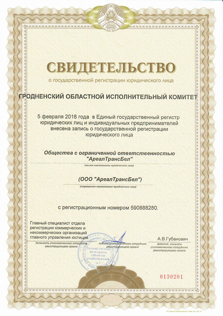 05 февраля 2018 года зарегистрировано дочернее предприятие ООО "АреалТрансБел" (регистрационный номер 590888280) 99% владеет ООО "АреалТранс" Россия.